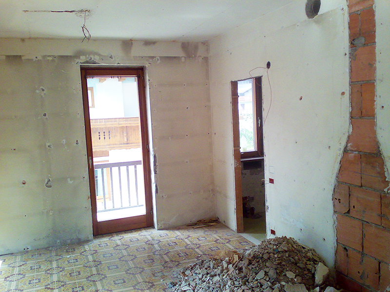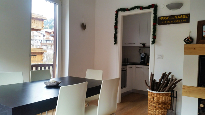 Questa ristrutturazione è stata realizzata in Trentino, in un appartamento a San Martino di Castrozza, di circa 60 mq. La casa è stata totalmente rinnovata a partire da due aspetti principali: il pavimento e il camino; il primo è stato rinnovato eliminando le vecchie piastrelle in maiolica e sostituendole con un più appropriato parquet in rovere, mentre il secondo è stato riprogettato con una forma solidamente geometrica in muratura e legno, creando così un ambiente confortevole a misura di famiglia.