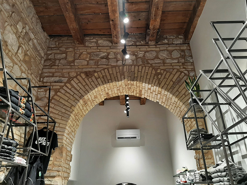 Ristrutturare e cambiare aspetto ad un negozio è la nostra passione! Per lo store +39 in centro ad Ancona abbiamo realizzato un restyling completo esaltando la storicità della pietra e del legno con l’arredo moderno e minimale dell’acciaio.