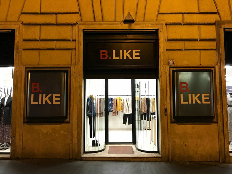 L’edificio romano che ospita il negozio di abiti femminili B.Like è uno spazio di circa 216 mq, molto luminoso e fruibile. Il pavimento in parquet chiaro e le pareti dal colore tenue, sottolineano una forma semplice e lineare, e accolgono con armonia le arelle e gli scaffali realizzati in un piacevole stile industrial chic.