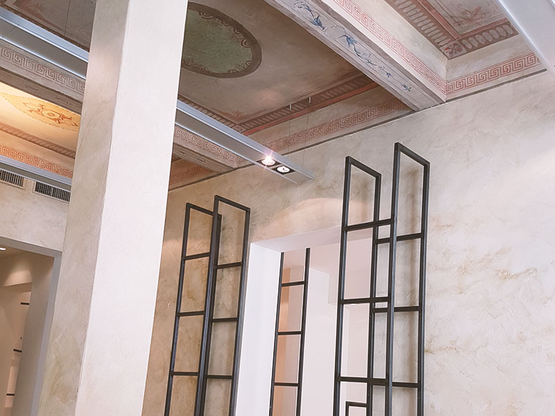 Nelle vie del centro storico di Pesaro è stato realizzato un intervento di ristrutturazione all’interno di un palazzo nobiliare, per un negozio di abbigliamento uomo donna. La struttura di grandi proporzione e sviluppata su tre piani presenta delle finiture molto elaborate, come il pavimento in graniglia e lastre in pietra, delle volte a crociera e bellissimi soffitti con decorazioni pittoriche geometriche